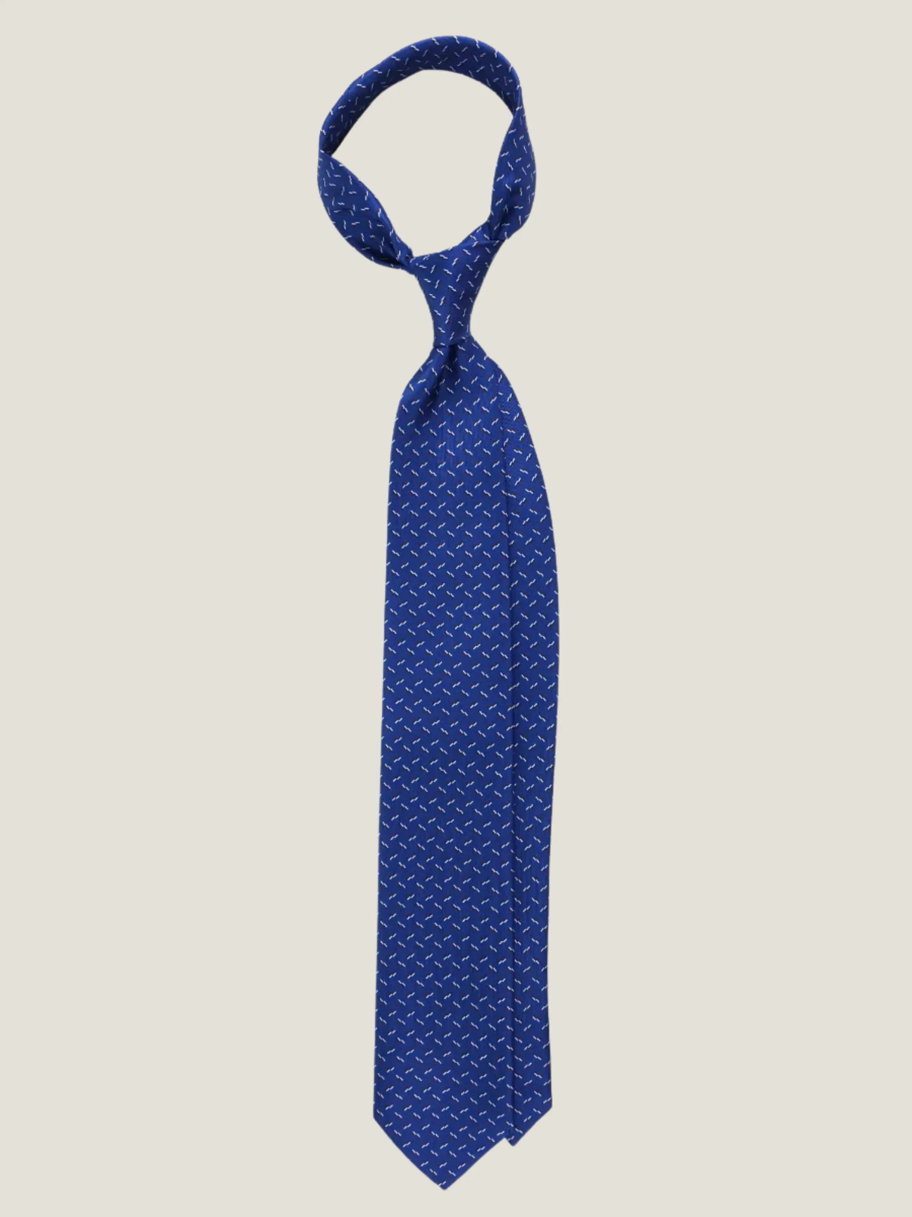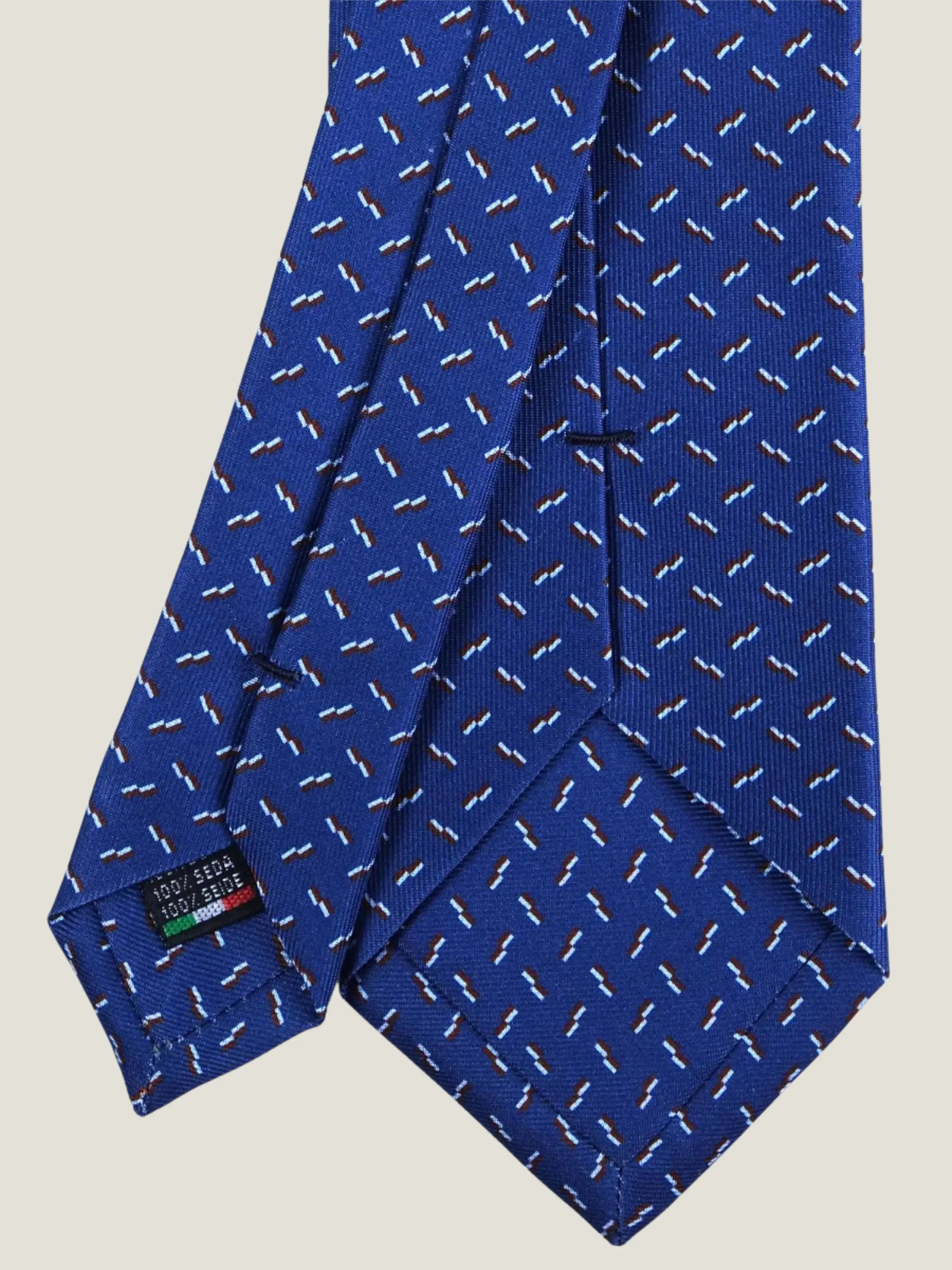 This Navy printed English silk tie, embellished with a blue micro pattern, is designed for the man who wants to stand out with class. A perfect combination of tailoring tradition and contemporary style.