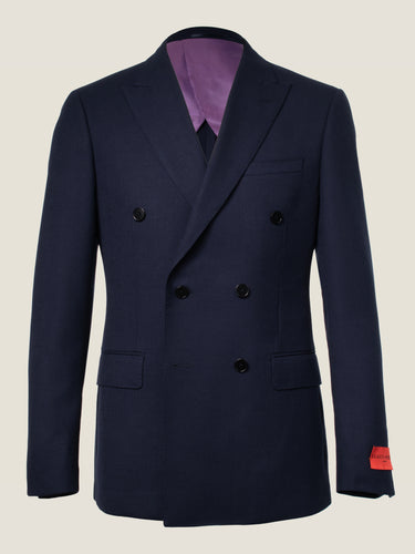 Klassischer, zweireihiger Hopsack-Blazer in Marineblau. Halbgefüttert für die Sommermonate.