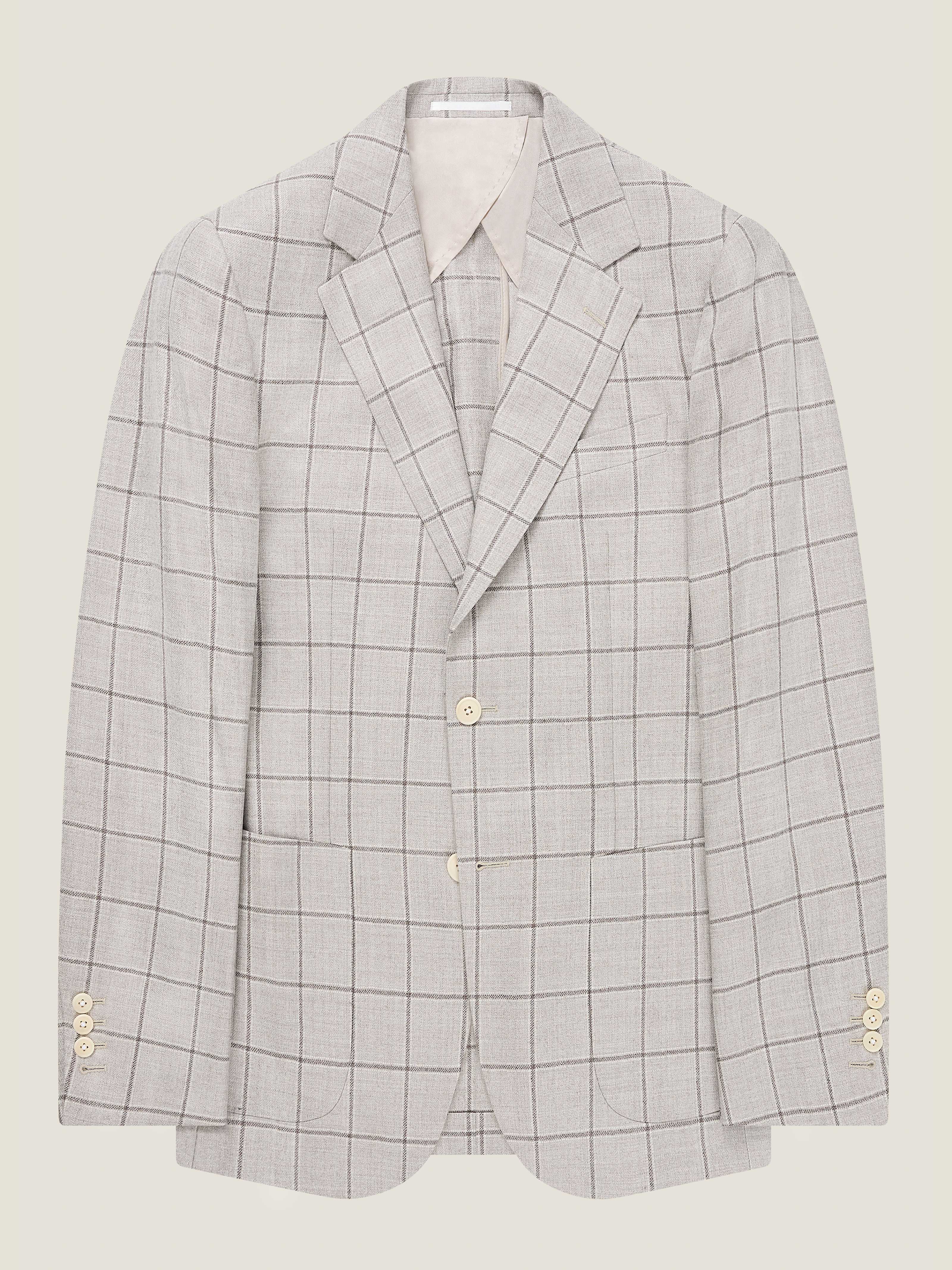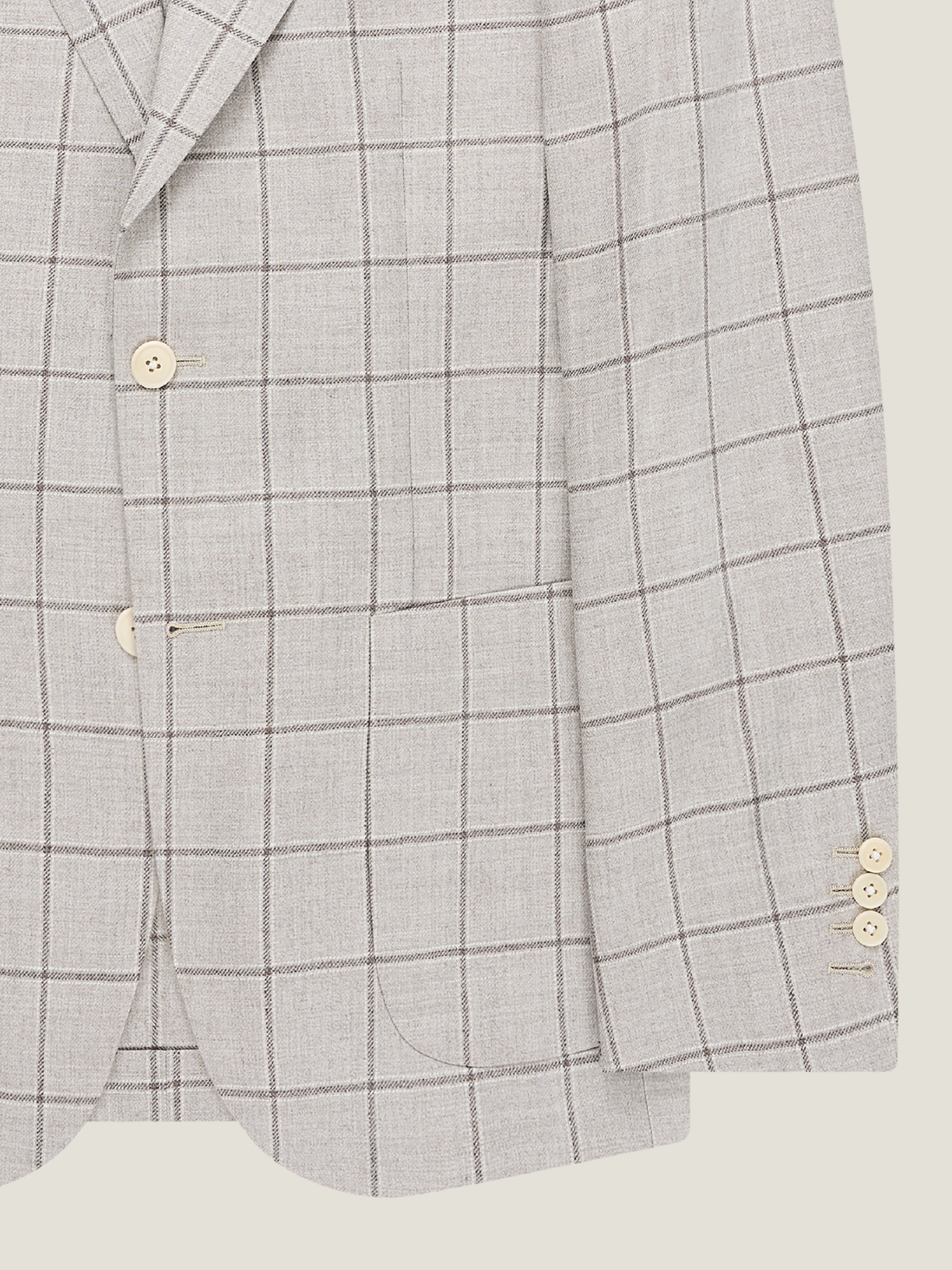 Elevate your autumn wardrobe with the Bruno Windowpane Jacket, a refined blazer tailored for the season.