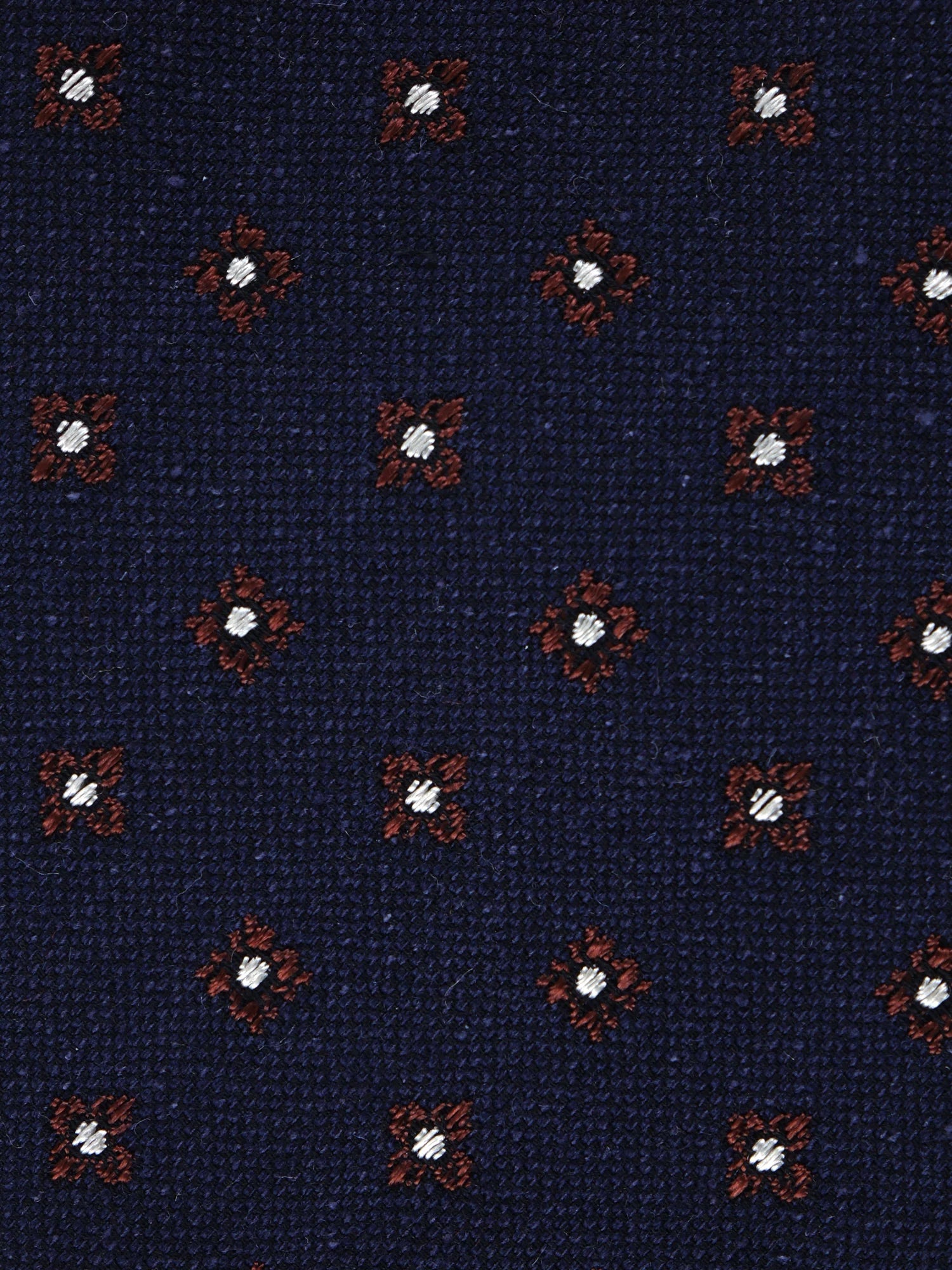 Navy background with brown and white flowers .
