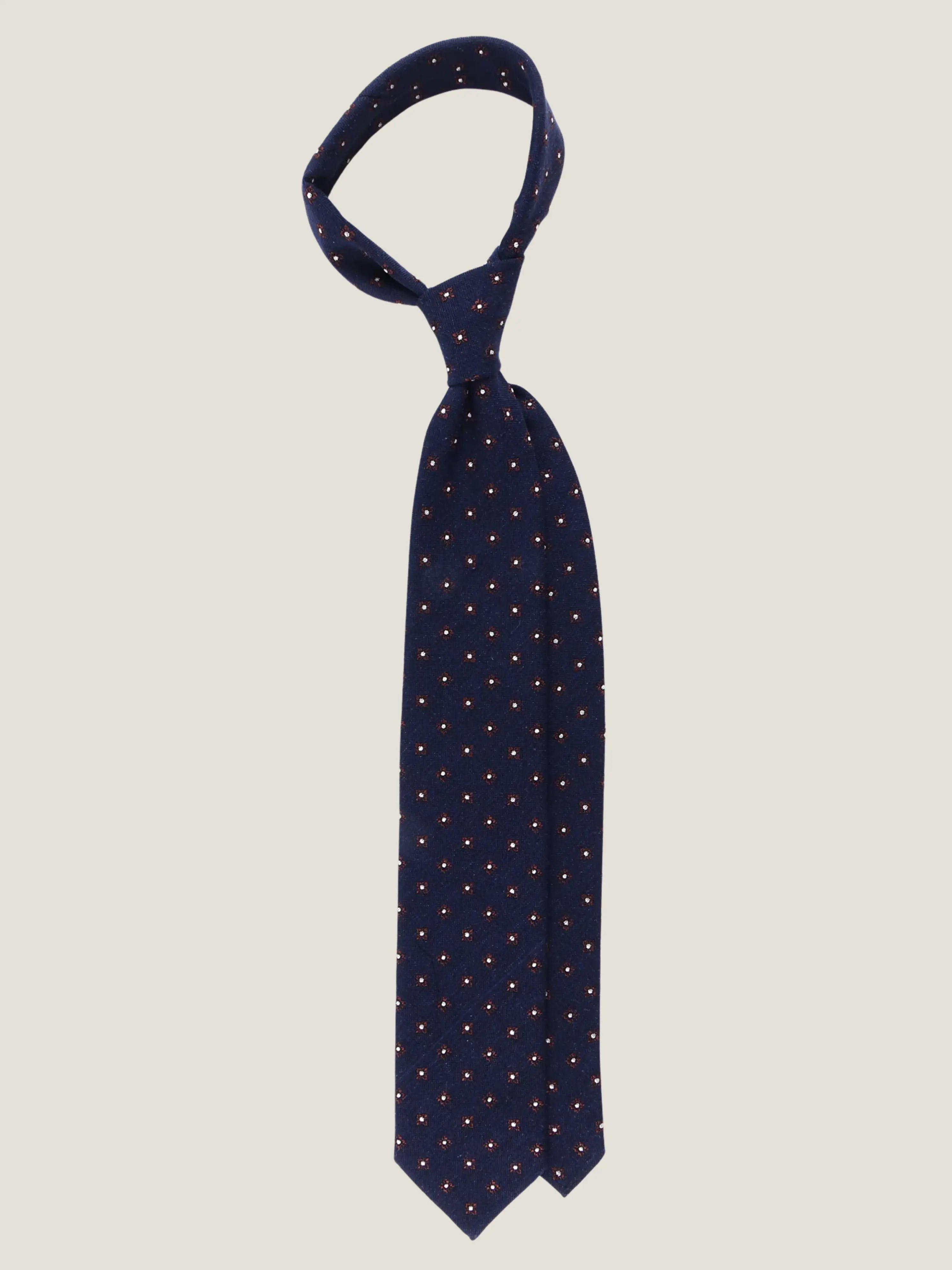 Navy 3-Fold Tie In Silk & Wool