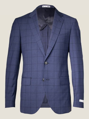 This classic Navy windowpane jacket features half-lining details and luxury light-weight fabric by Zignone Italia.